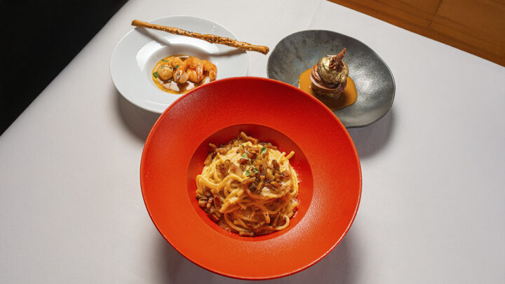 No comando da cozinha, Peu, diplomado pelo Instituto Italiano de Culinária e com passagem por restaurantes estrelados como o Piazza Duomo, faz uma leitura contemporânea da gastronomia mediterrânea, valorizando ingredientes locais e a pesca artesanal. “O Arento é uma cozinha de mares, que respeita o tempo dos ingredientes e o prazer da mesa”, resume o chef.