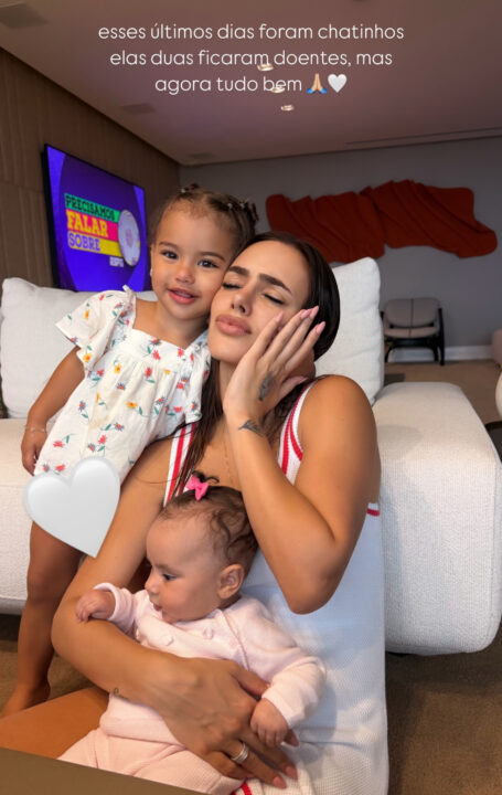 A influenciadora, que costuma compartilhar momentos da rotina com as meninas, explicou o motivo de ter se afastado das redes sociais, mas garantiu que ambas já estão recuperadas.