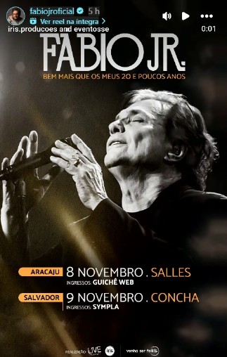 O romantismo vai tomar conta da Concha Acústica do Teatro Castro Alves no dia 9 de novembro, quando o cantor Fábio Jr. desembarca em Salvador com a turnê “Bem Mais Que os Meus 20 e Poucos Anos”.