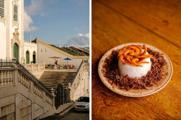 Para uma experiência mais popular, Daniel Jorge cita o Point da Codorna, no Mercado do Dois de Julho, e o Restaurante Beira Mar, da Dona Regina, na Feira de São Joaquim. “Ela faz cachaças com infusões medicinais. São cerca de 180 tipos, uma para azia, outra para coração partido. É um dos lugares mais especiais da cidade”, confessa. Já no Carmo, no Centro Histórico, ele recomenda o Café & Câmera, “um ótimo lugar para um café e uma boa conversa”, instalado dentro da Igreja da Ordem Terceira do Carmo.