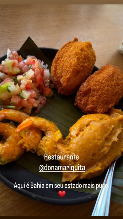 “Aqui é Bahia em seu estado mais puro”, escreveu Padre Fábio, ao compartilhar registros da sua experiência gastronômica no restaurante comandado pela chef Leila Carreiro, conhecido por celebrar as raízes da Bahia e da culinária afro-indígena e sertaneja, com ingredientes, modos de preparo e temperos que agradam aos mais diversos paladares.