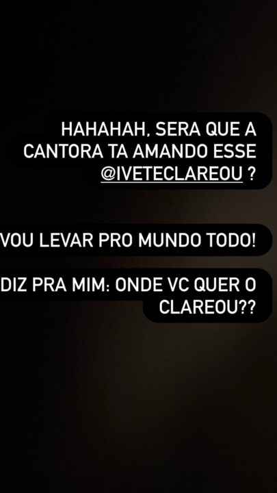 “Será que a cantora está amando esse Clareou? Vou levar pro mundo todo”, escreveu a baiana.