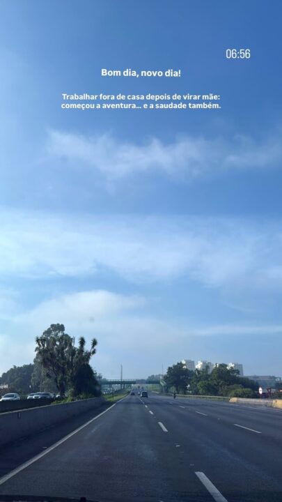 “Trabalhar fora de casa depois de virar mãe: começou a aventura e a saudade também”, escreveu a baiana, que também voltou a praticar exercício físico nesta semana.