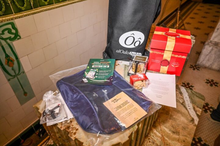 Dentro das bolsas, um verdadeiro kit de boas experiências: vela perfumada, orquídeas e caramelo da marca Acqua Aroma, biscoitinhos artesanais da Moura Dubeux, panetone da Almacen Pepe e vouchers de desconto da Cristalli e da Sabin. Além disso, os convidados também receberam uma nécessaire de viagem da Costa do Sauípe, perfeita para os próximos roteiros de férias.