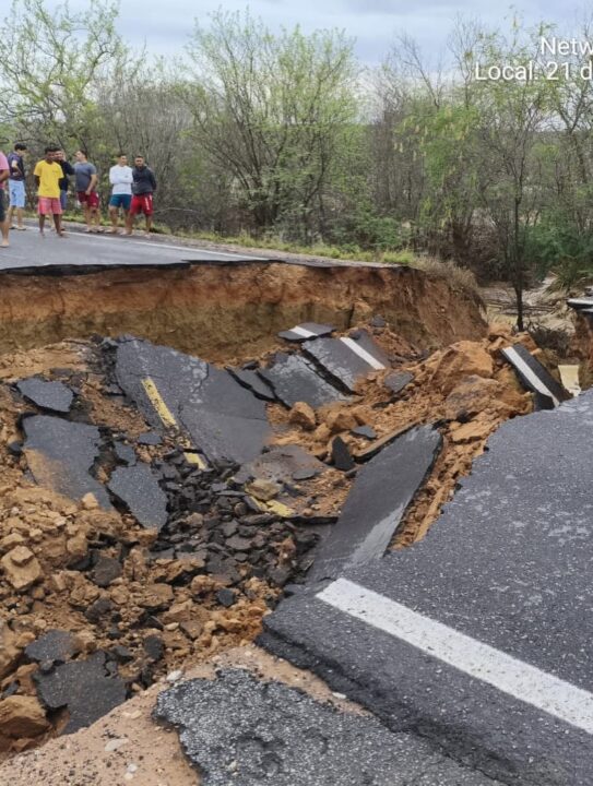 Uma cratera se abriu na BR-116, no km 290, trecho que liga os municípios de Araci e Tucano, no interior da Bahia. Por causa disso, a pista foi completamente interditada, nesta sexta-feira (21).