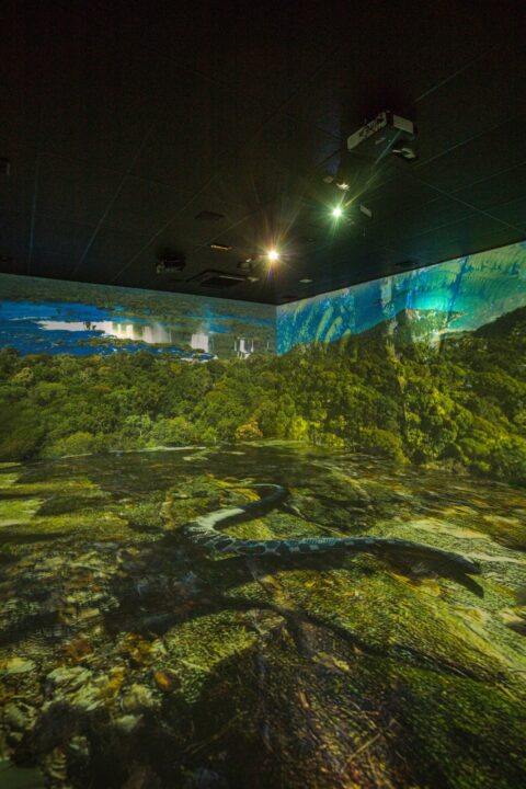 O ambiente utiliza projetores de alta resolução que exibem nas paredes e no chão árvores, animais e elementos do bioma presente na capital. A curadoria do conteúdo audiovisual é do SSA Mapping, festival internacional de artes visuais conhecido por transformar prédios históricos de Salvador em telas monumentais.