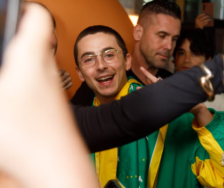 Timothée Chalamet movimentou São Paulo na tarde desta quinta-feira (4) ao aparecer de surpresa em uma ativação especial do filme Marty Supreme. O ator, de 29 anos, surgiu sorridente, esbanjando simpatia e vestindo um casaco nas cores amarelo e verde, look que imediatamente viralizou nas redes sociais e reforçou a tendência do chamado Brasil Core.