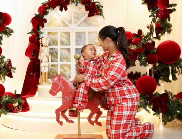 A influenciadora Ary Mirelle compartilhou com os seguidores um álbum de fotos natalinas com a família. Nas imagens, ela aparece com o marido, o cantor João Gomes, e os filhos, Jorge e Joaquim.
