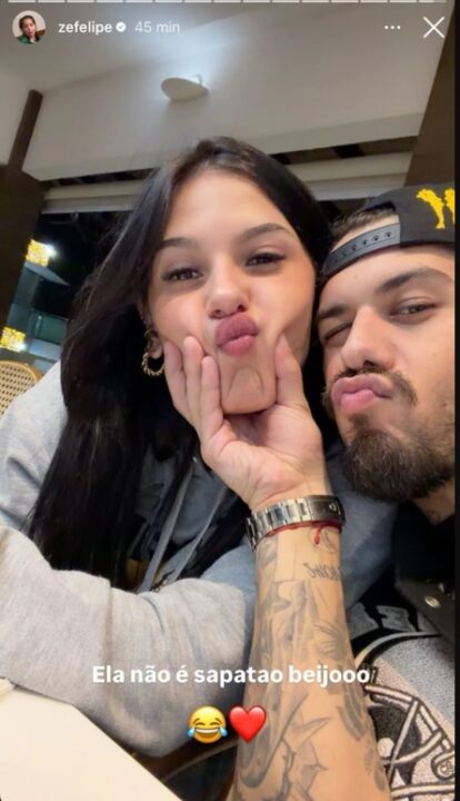 Por meio dos stories, o cantor publicou uma foto descontraída ao lado da namorada e ironizou a situação que tomou conta da internet. “Ela não é sapatão, beijoooo”, escreveu, acompanhado de emojis de coração e gargalhada.