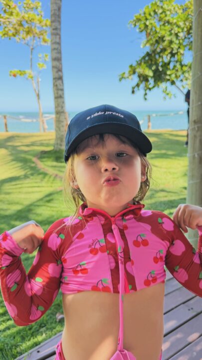 Nos stories do Instagram, Virginia compartilhou um momento divertido entre a filha Maria Alice e Tainá Militão descendo em um brinquedo inflável na piscina. Em outro story, Maria Flor aparece posando para a mãe usando o boné com a frase: “a vida presta”.