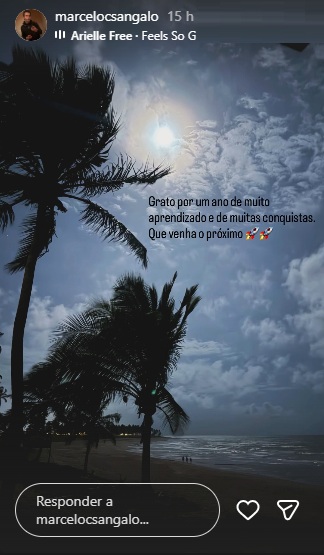 O filho mais velho do casal, Marcelo, também se manifestou nas redes sociais. Nos stories, ele publicou uma foto de uma praia e fez um balanço do ano que terminou. “Grato por um ano de muito aprendizado e de muitas conquistas. Que venha o próximo”, escreveu.