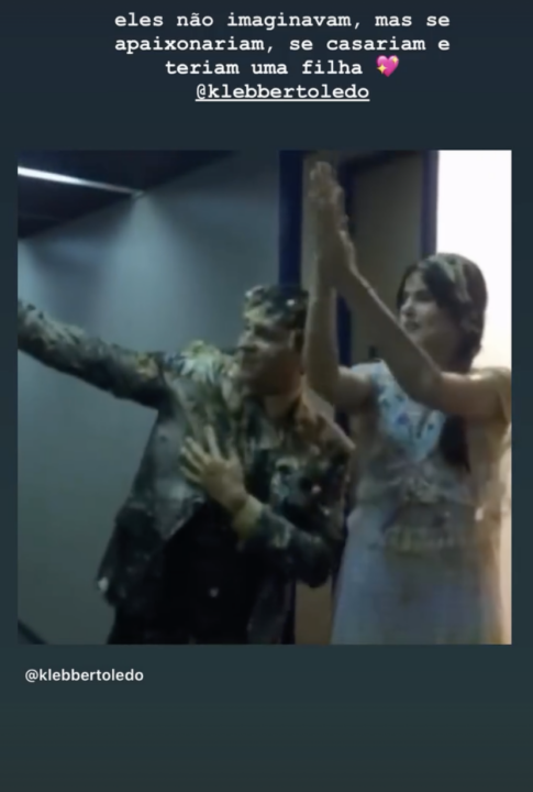 Mais nova mamãe do momento, Camila Queiroz compartilhou, através das redes sociais, um registro divertido ao lado do ator Klebber Toledo, seu atual marido e pai da sua filha, Clara. No vídeo gravado em março de 2016, os atores aparecem em clima de descontração, cobertos de bolo, nos bastidores da novela “Êta Mundo Bom!”, da TV Globo. “Eles não imaginavam, mas se apaixonariam, se casariam e teriam uma filha”, escreveu Camila.