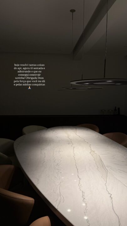 Nos stories do Instagram, ela mostrou alguns espaços do imóvel como a mesa de jantar e a penteadeira. Mari aproveitou para refletir sobre a conquista.