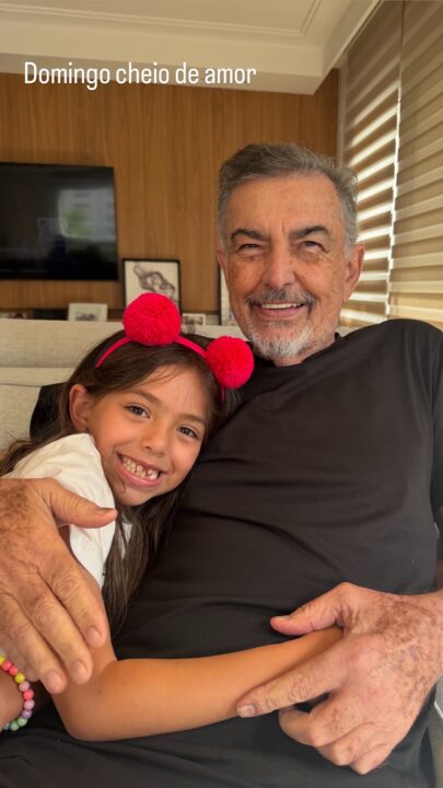 Diagnosticado com câncer no pâncreas, seu Omar Rahal, pai de Sabrina Sato, surgiu em um clique raro com a neta Zoe. A pequena, de sete anos de idade, é fruto da antiga relação entre a apresentadora e o empresário e ator Duda Nagle. No registro, os dois aparecem em clima de carinho, abraçados e sorridentes. “Domingo cheio de amor”, escreveu Sabrina.