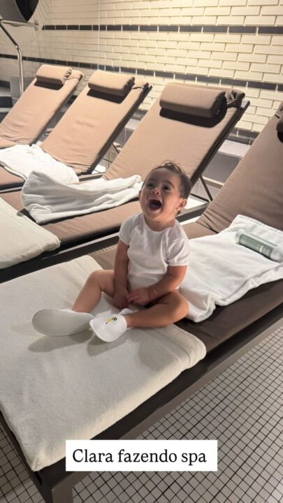 Filha da influenciadora Graciele Lacerda e do cantor Zezé di Camargo, a pequena Clara segue aproveitando intensamente a sua primeira viagem internacional. O destino escolhido pela família para a temporada de férias foi a Suíça. Além passear e visitar lugares encantadores, a bebê de um ano de idade encantou o público nesta terça-feira (3) ao surgir sorridente curtindo um merecido dia de spa.