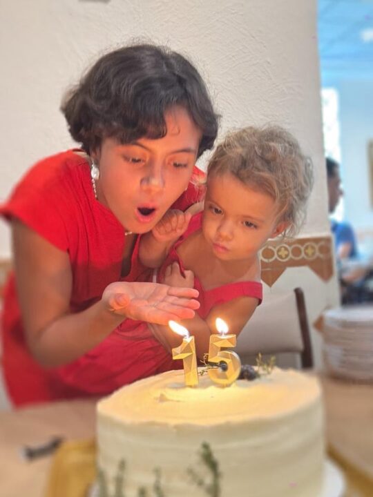 “O dia era ontem; foi há 15 anos. Aquele corpinho quentinho, saído de mim, que sempre será o corpinho quentinho da bebê mais amada que será sempre a mais amada, assim como a dos bebês que a sucederam. Com vocês, nossa Joana, 15 anos! Linda! Obrigada por tanto minha filha. Você é o encanto de nossas vidas!”, escreveu a professora de ioga, que também é mãe de Maria, Varuna e Hima.