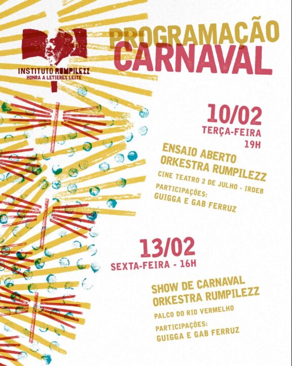 Em clima de Carnaval, a Orkestra Rumpilezz vai movimentar Salvador com um ensaio gratuito no próximo dia 10 de fevereiro. O evento acontece a partir das 19h, no Cine Teatro 2 de Julho, no bairro da Federação, e contará com as participações de Guigga e Gab Ferruz, considerados duas potências da música baiana.