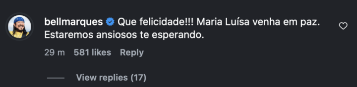 Rafa Marques, filho de Bell Marques, emocionou o público nesta sexta-feira (6) ao anunciar que será pai de uma menina. A bebê, que se chamará Maria Luisa, é fruto da relação entre o cantor e a influenciadora Pati Guerra. Através das redes sociais, o casal compartilhou detalhes do chá revelação e ganhou diversas mensagens de carinho, inclusive do avô coruja. “Que felicidade!!! Maria Luísa venha em paz. Estaremos ansiosos te esperando”, escreveu Bell.