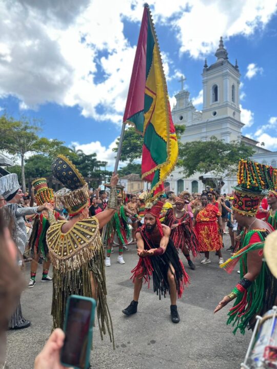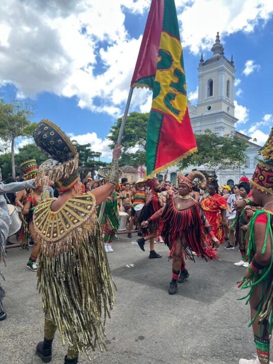 Neste ano, o bloco escolheu como tema o “Samba Reggae”, celebrando o ritmo criado na Bahia por Neguinho do Samba e sua conexão com a diáspora africana e a Jamaica. Segundo o coletivo, o desfile homenageia encontros, lutas e resistências que marcam a história do povo negro e da cultura do Pelourinho.