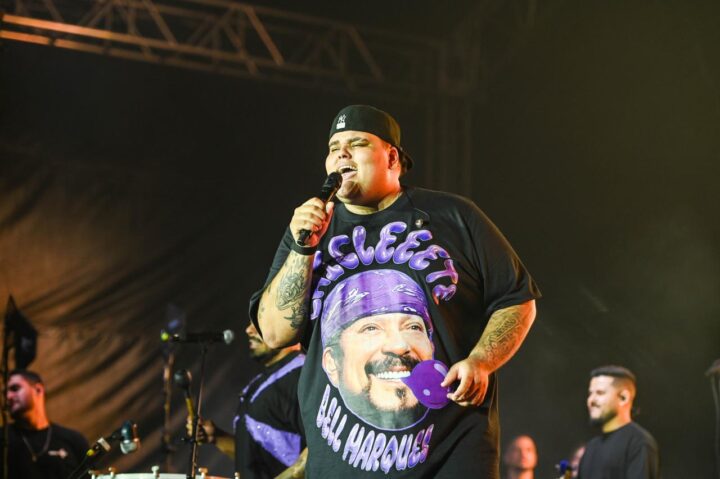 Dono do hit mais escutado do Brasil em 2025, o grupo Menos é Mais voltou a agitar o Carnaval de Salvador nesta sexta-feira (13) em um show marcado pela mistura de ritmos e clima alto astral. Durante a apresentação realizada no Camarote Villa, no circuito Dodô (Barra/Ondina), o vocalista Eduardo Caetano, mais conhecido como Duzão, chamou a atenção ao surgir com uma camisa estampada com o rosto do cantor Bell Marques, ícone da folia baiana.