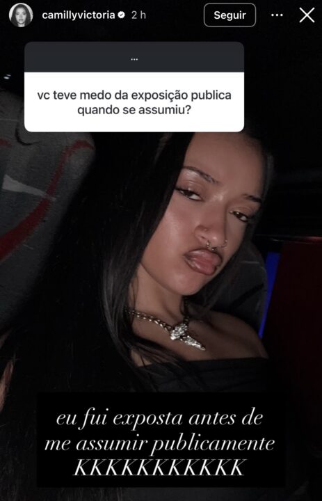 Já sobre o medo da reação do público ao assumir sua sexualidade, Camilly lembrou que não teve a chance de conduzir a narrativa no próprio tempo, referindo-se aos rumores vazados na mídia na época. “Eu fui exposta antes de me assumir publicamente”, pontuou.