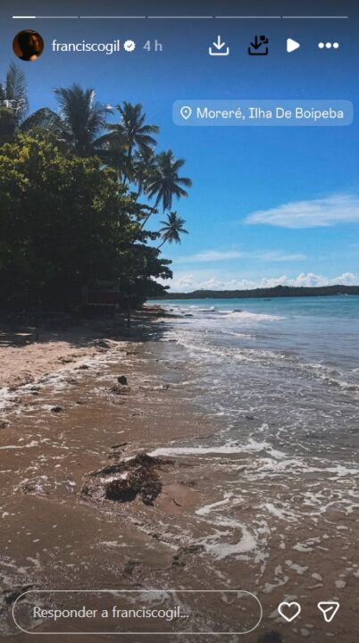 Através dos stories, Fran publicou registros de passeios pela praia, cercado pelo visual paradisíaco da região, um dos destinos mais procurados por famosos e turistas que buscam tranquilidade longe da agitação.
