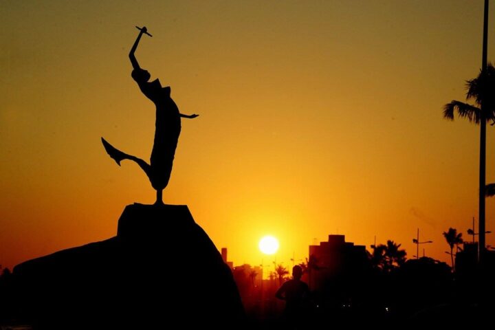 Por do sol com Sereia de Itapuã ao fundo | Foto: Valter Pontes