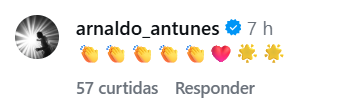 O cantor e compositor Arnaldo Antunes, que faz parceria com Brown e Marisa em Tribalistas, deixou um comentário no post.