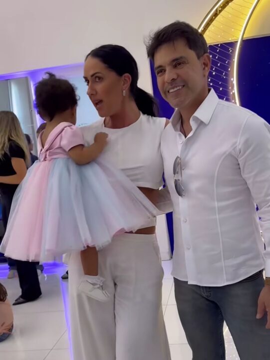 Durante a celebração, Zezé também foi fotografado com a aniversariante, o irmão dela, Joaquim, de seis anos, além de Camilla. A festa reuniu ainda outros membros da família, como a atriz Luciele Di Camargo, acompanhada da filha Maria Eduarda, de 15 anos.
