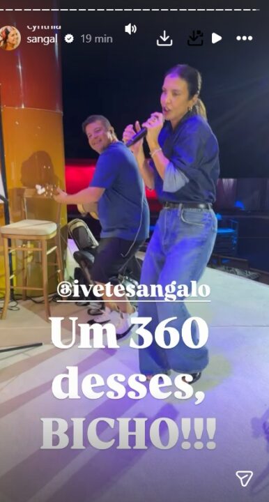 Nos stories, Cynthia Sangalo compartilhou registros do momento com os fãs. A própria Ivete também publicou imagens da preparação. Com a estrutura já montada, a cantora deu uma palhinha ao som de “Só Vai de Camarote”, do Grupo Revelação.