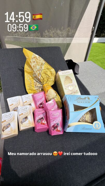 Virginia também compartilhou uma foto com os chocolates que ganhou de Vini Jr. “Meu namorado arrasou, irei comer tudo”, escreveu.