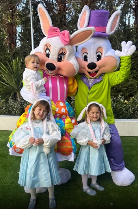 A brincadeira aconteceu no jardim da casa e contou com a presença de dois personagens vestidos de coelhos, que divertiram as crianças. Os três filhos de Virginia com Zé Felipe, Maria Flor, Maria Alice e José Leonardo participaram do momento em família.