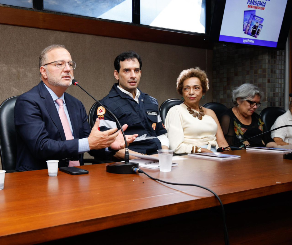 O lançamento contou com a presença de autoridades e profissionais envolvidos na resposta à pandemia, entre eles Fábio Vilas-Boas, Rívia Barros, Carlos Marthéo, Zaida Melo e Doiane Lemos.