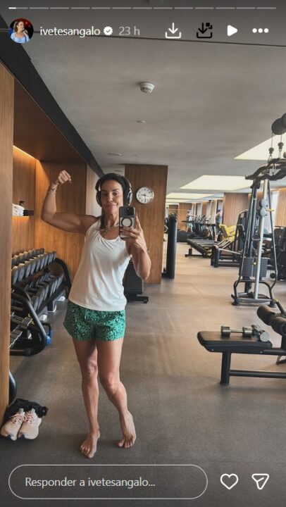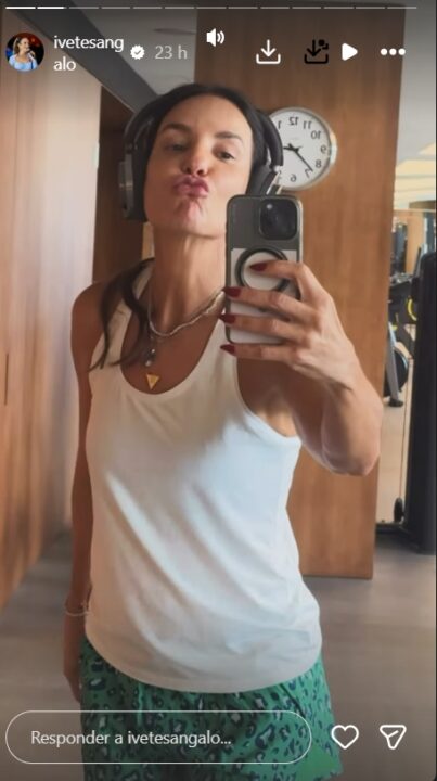 Nos stories, Ivete surgiu com look fitness composto de shortinho e regata branca, exibindo os braços definidos. Em clima descontraído, ela ainda brincou ao dançar para a câmera.
