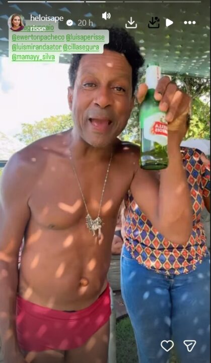 Hospedada em Praia do Forte, no litoral norte, a atriz apareceu se divertindo após um dia de praia, em clima descontraído no condomínio. Entre os presentes estavam o ator Luis Miranda e a filha da comediante, Luisa Périssé.
