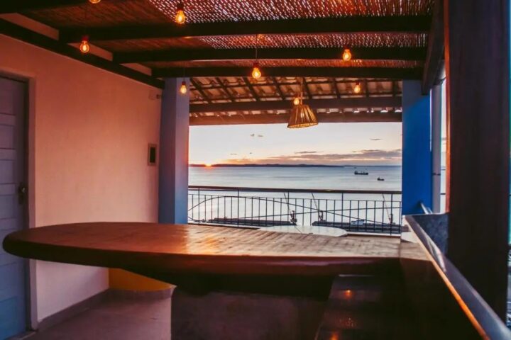 Também na região, um solar reformado reúne 12 suítes com capacidade para até 22 hóspedes. A decoração tem inspiração praiana, com destaque para a jacuzzi no terraço, de onde é possível acompanhar o pôr do sol com vista panorâmica para a baía. O imóvel fica próximo ao Pelourinho.