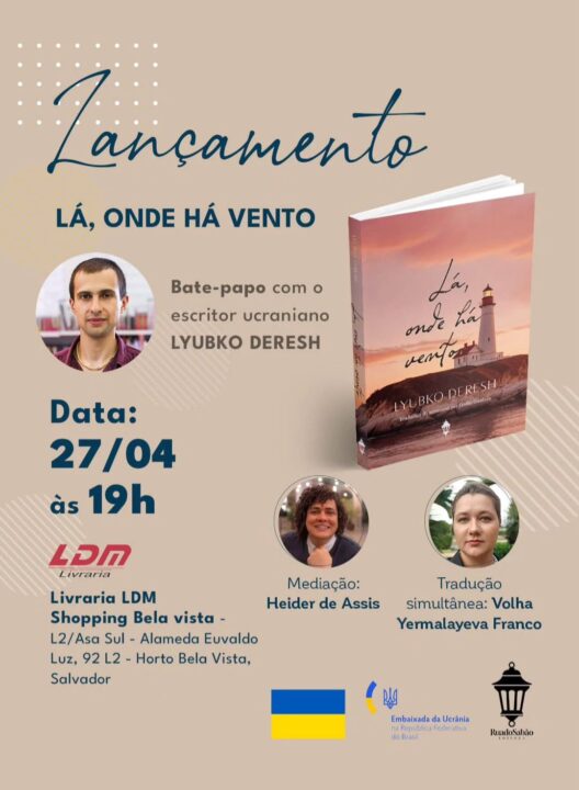 Salvador recebe o escritor ucraniano Lyubko Deresh para o lançamento do seu novo romance, “Lá, onde há vento”. O evento especial contará também com um bate-papo com o autor neste domingo (27), às 19h, na Livraria LDM do Shopping Bela Vista, com mediação de Heider de Assis e tradução simultânea.