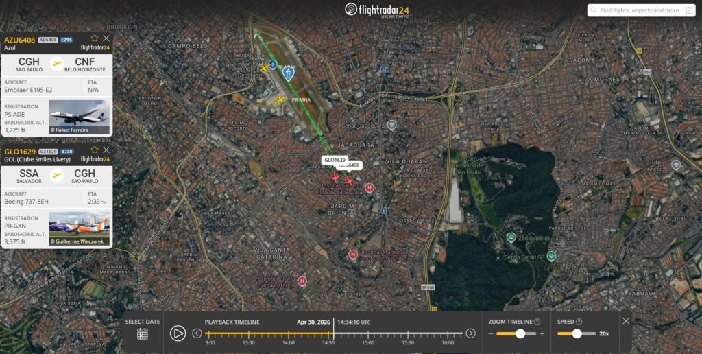 De acordo com dados da plataforma FlightRadar24, os aviões chegaram a ficar separados por cerca de 75 pés (22 metros) enquanto sobrevoavam a região do bairro Jabaquara, por volta das 11h34.