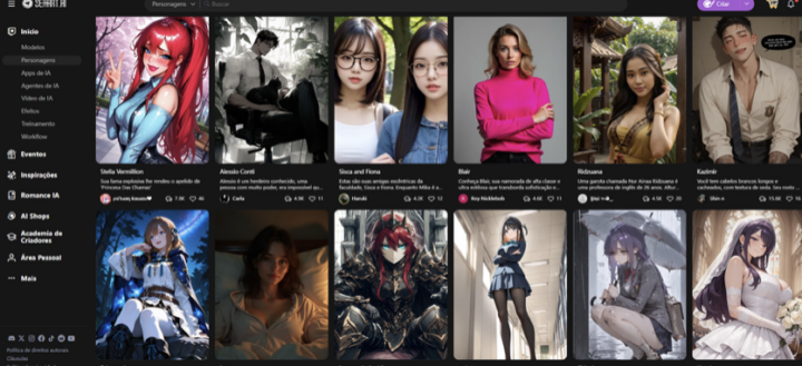 Gostou do resultado? No SeaArt você pode ir além: publique seu personagem na galeria pública do CyberPub e deixe que outros usuários descubram e conversem com ele. Quem sabe você não cria a próxima celebridade virtual da comunidade? É a sua chance de compartilhar sua criação e ver sua popularidade crescer.
